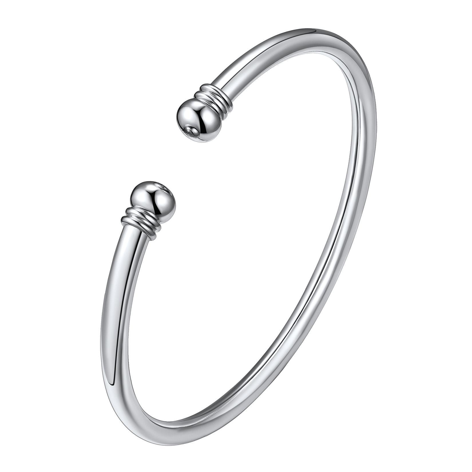 U7 Womens Bracelets 925 Sterling Silver Open Bangle Bracelet 7mm Round Ball Trendy Cuff Bangle Gift for Teens Girl