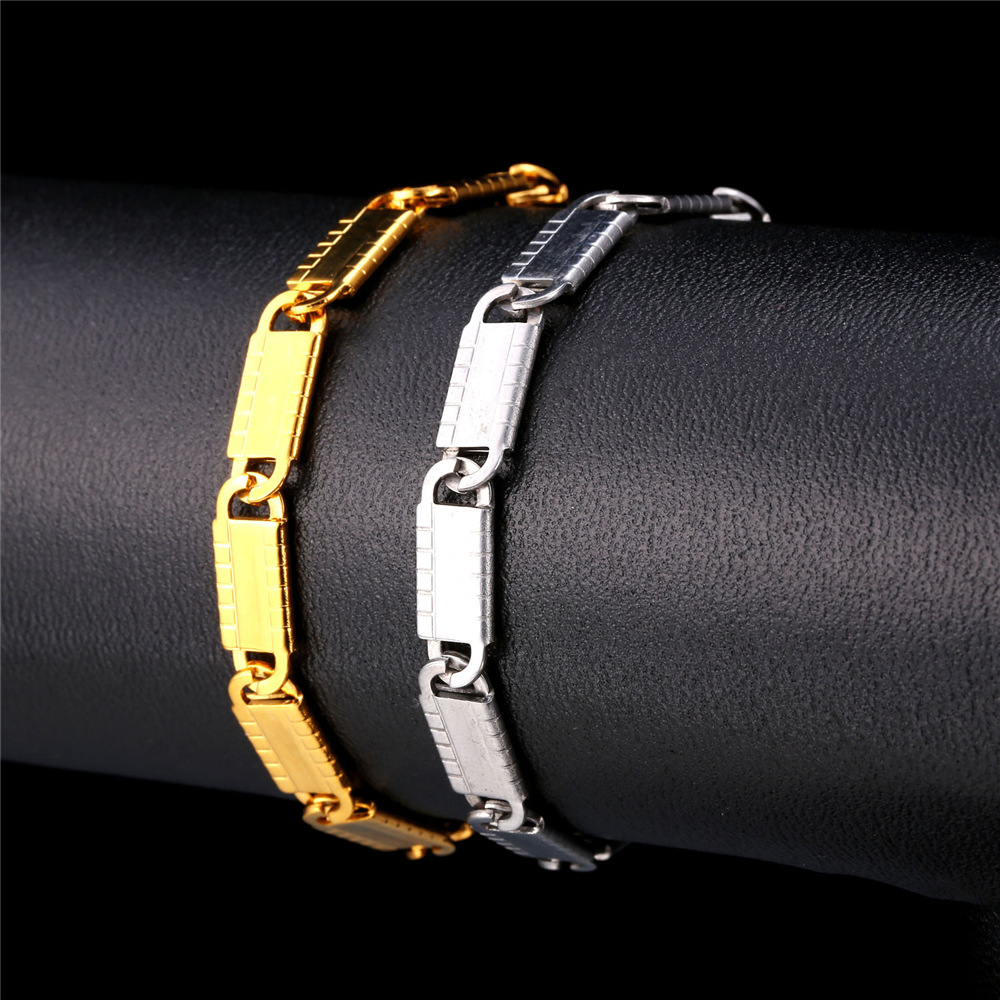 U7 Classic Men Silver/Gold Wrist Bracelet with Chain Detaching 15MM Cool Watchband