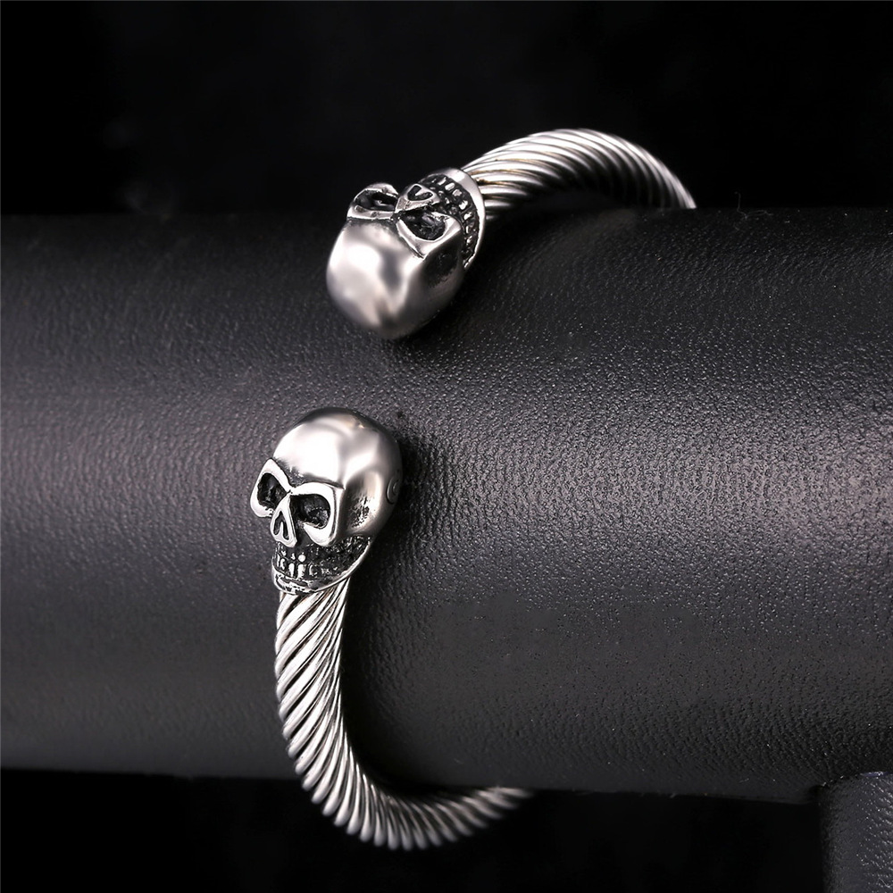 [Clearance]Punk Skull Bracelet Silver Open Cuff Bracelets for Men Women Halloween Gift Jewelry Everyday Bracelet Bangle