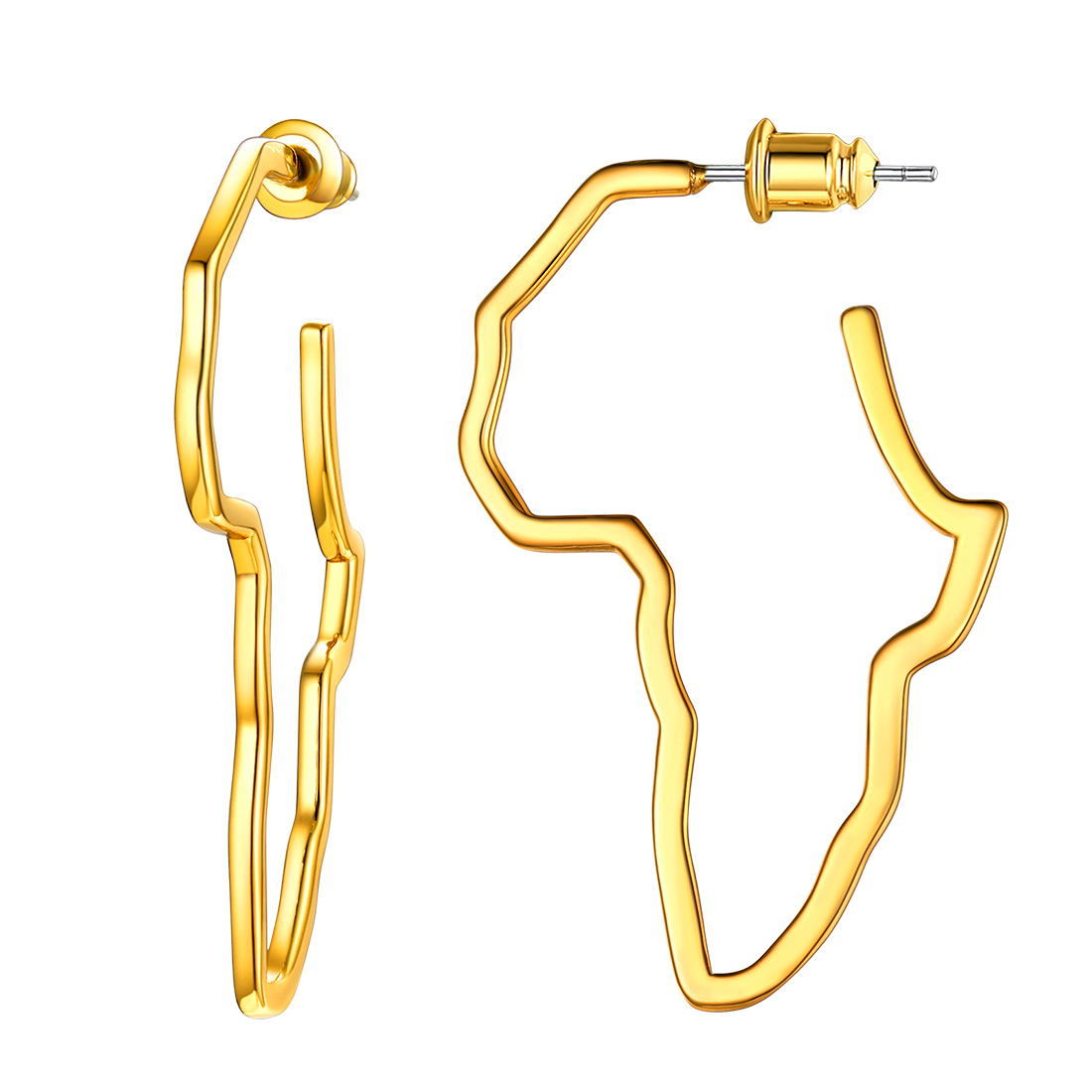 U7 African Map Earrings Lightweight Dangle Earrings for Women Teens Girls Extra Large Statement Hip Hop Hollow Out 18K Gold Plated Earrings(45mm/75mm)