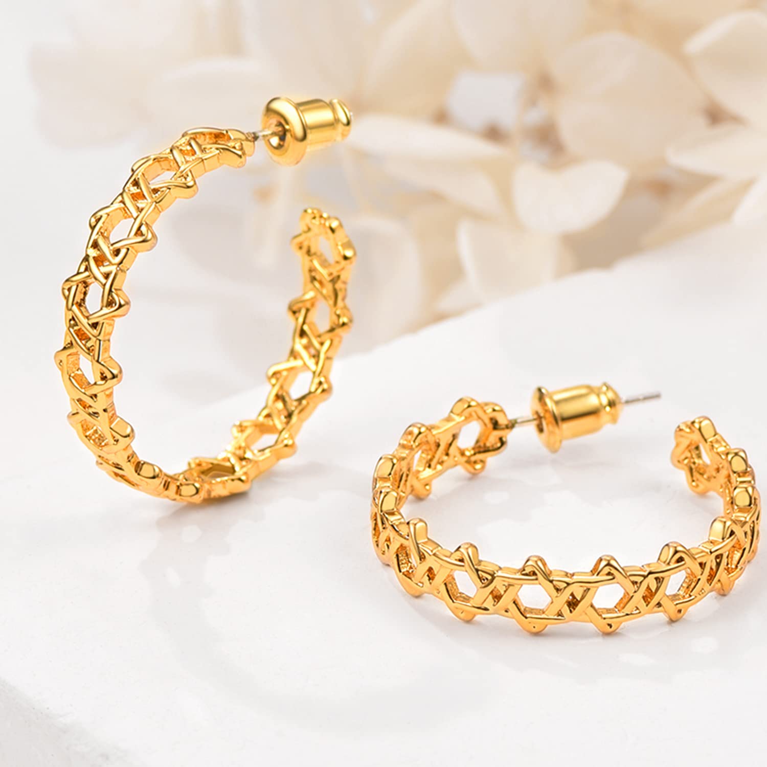 [Clearance]Gold Hoop Earrings Star of David Grain Small Open Hoop Earrings for Women Anniversary Gift