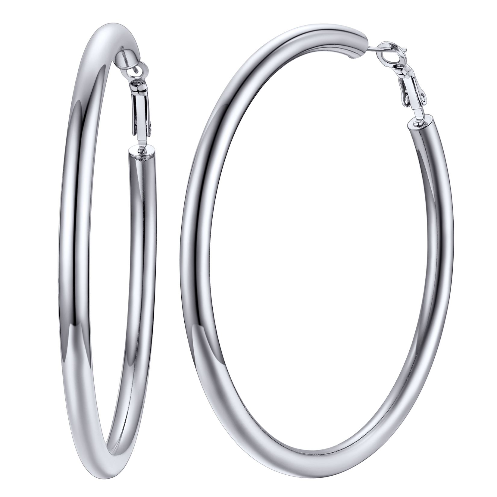 U7 Small 30mm/40mm/60mm/80nn Stainless Steel Tube Hoop Earrings Women Girls with Sterling Silver Post