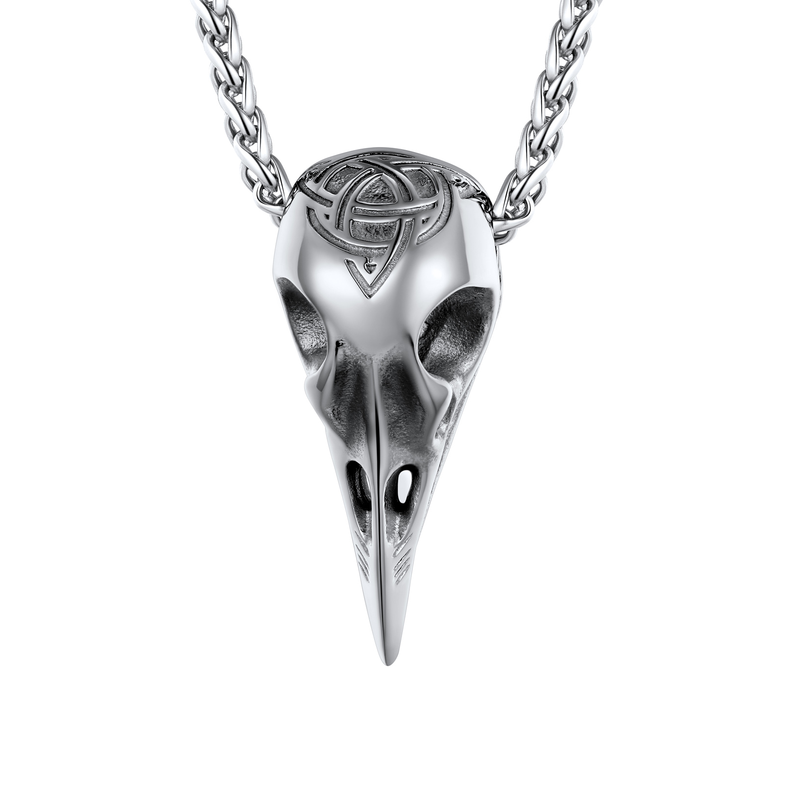 U7 Raven Skull Stainless Steel Silver/Black Norse Viking Bird Skull Pendant Occult Necklace Men Women