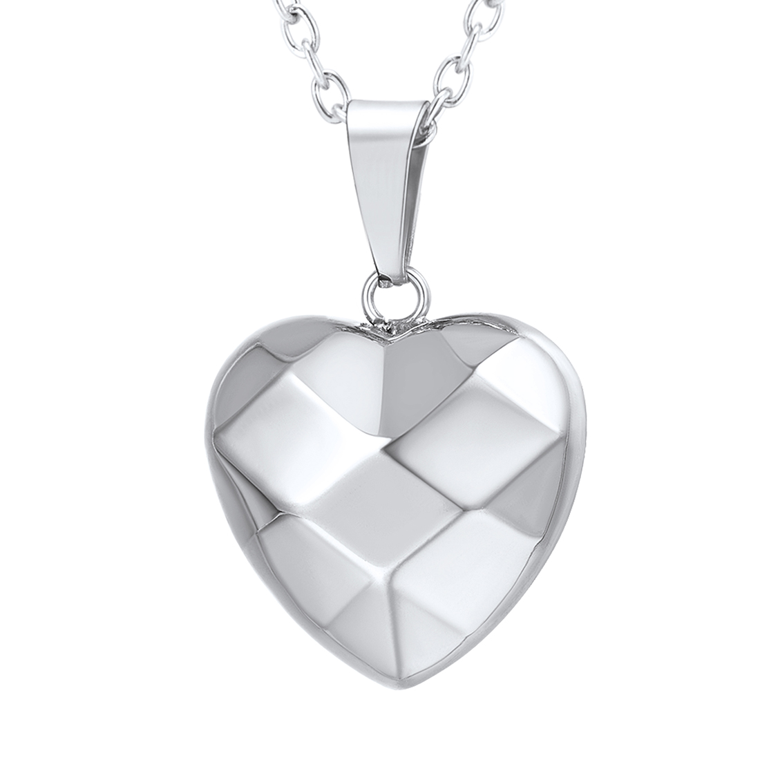 U7 Valentines Heart Necklace Stainless Steel Rolo Chain 3D Facet Love Pendant for Women Girls Lover