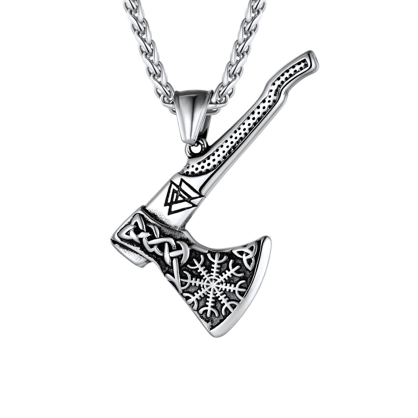U7 Nordic Viking Axe Pendant Necklace Stainless Steel Silver/Black for Men Boyfriend