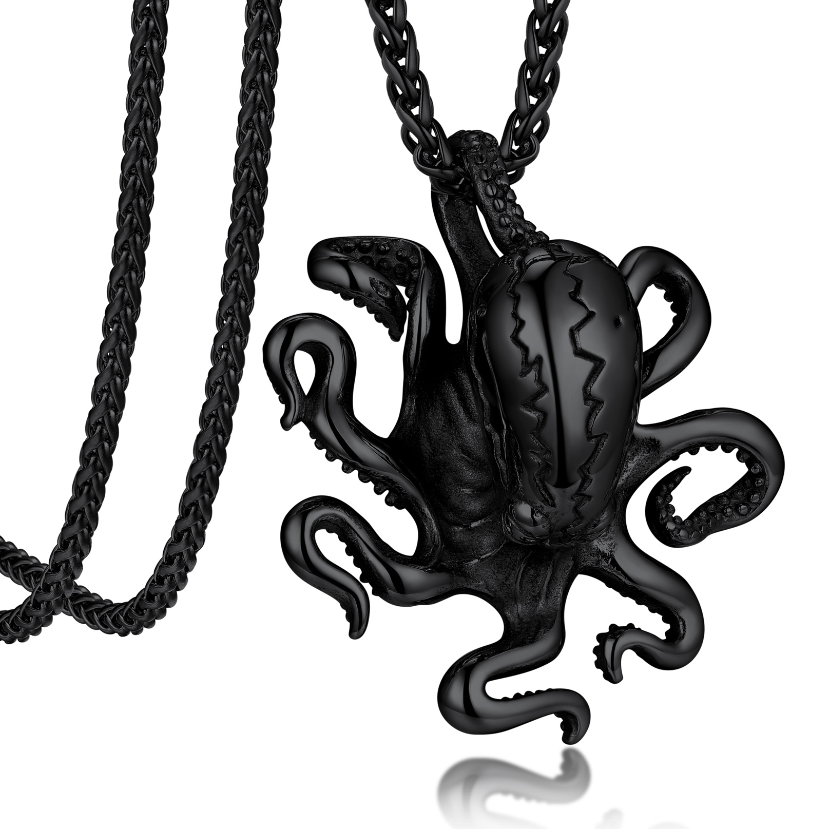 U7 Men Punk Cool Ocean Animal Octopus Pendant Necklace Jewelry Black Plated Wheat Chain 22inch for Son Birthday Gift