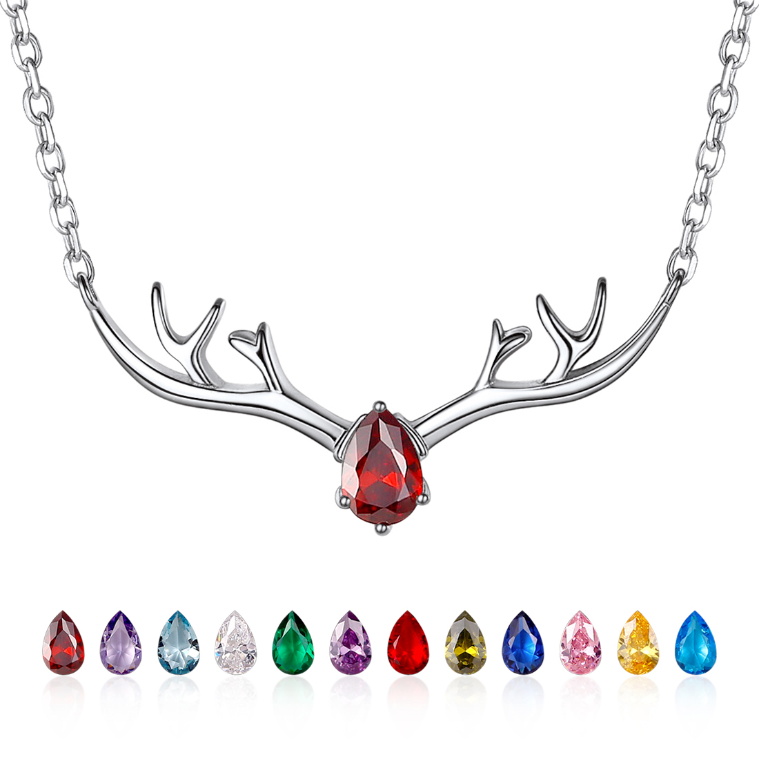U7 Antler Necklace 925 Sterling Silver Choker Pearl Cut Diamond Necklaces, Red Garnet Crystal January Birthstone Pendant for Women Girls Birthday Christmas Gifts