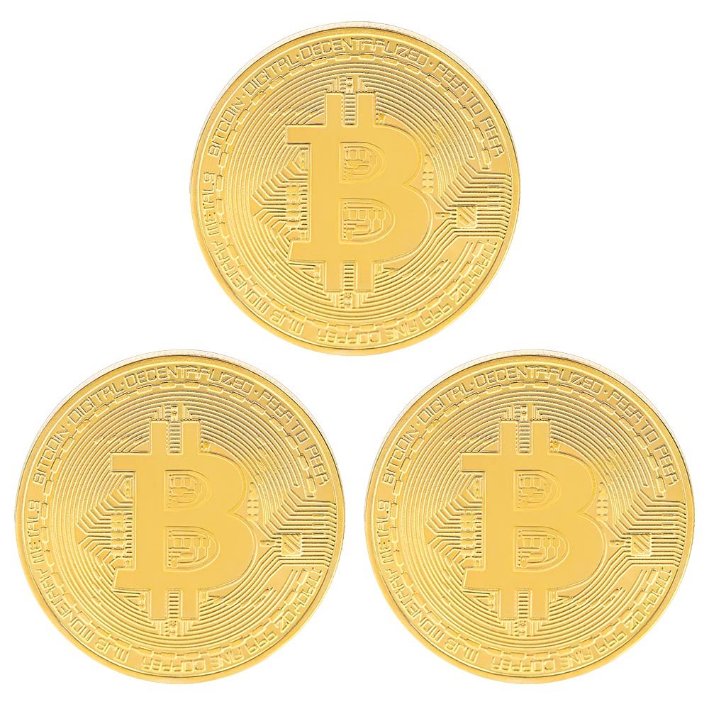 [Clearance]3 Coin Charms Medal Pendant Stainless Steel 18K Gold Plated Bitcoin Jewelry for Men