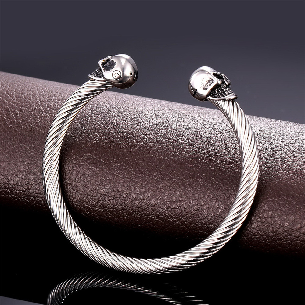 [Clearance]Punk Skull Bracelet Silver Open Cuff Bracelets for Men Women Halloween Gift Jewelry Everyday Bracelet Bangle