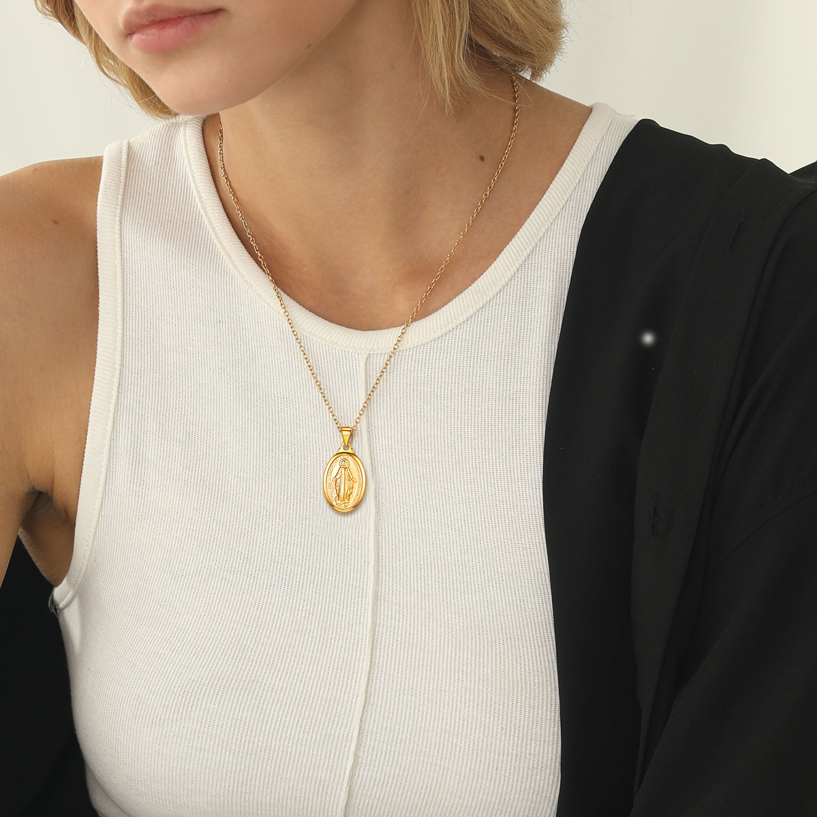 The Miraculous Medal (French: Médaille miraculeuse) - also known as the Medal of Our Lady of Graces, is a devotional medal. Tiny pendant of Virgin Mary - Birth Mother of Jesus is christian amulet jewellery.