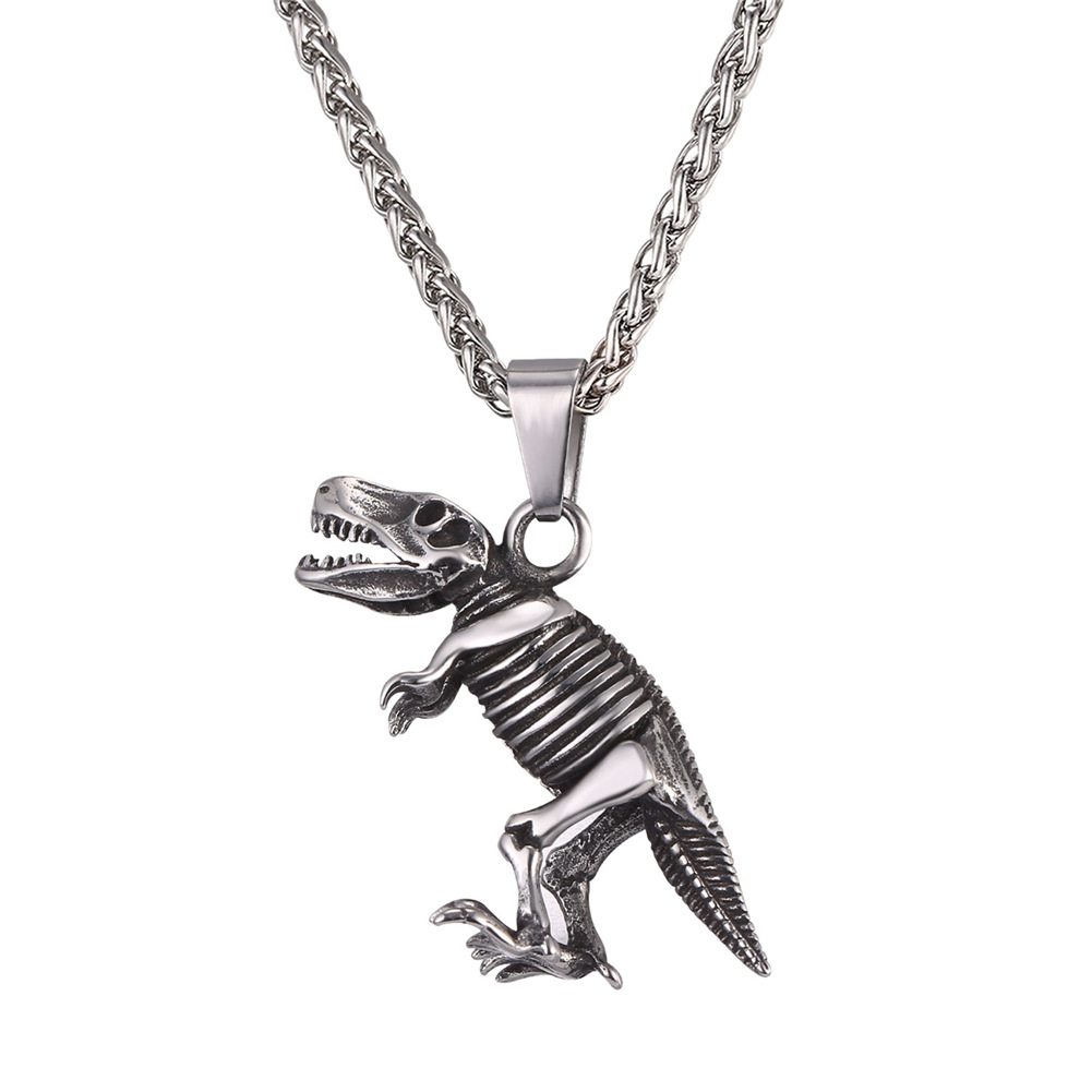 U7 Dinosaur Vintage Necklace Stainless Steel Silver/Gold Pendant Punk for Men Boy