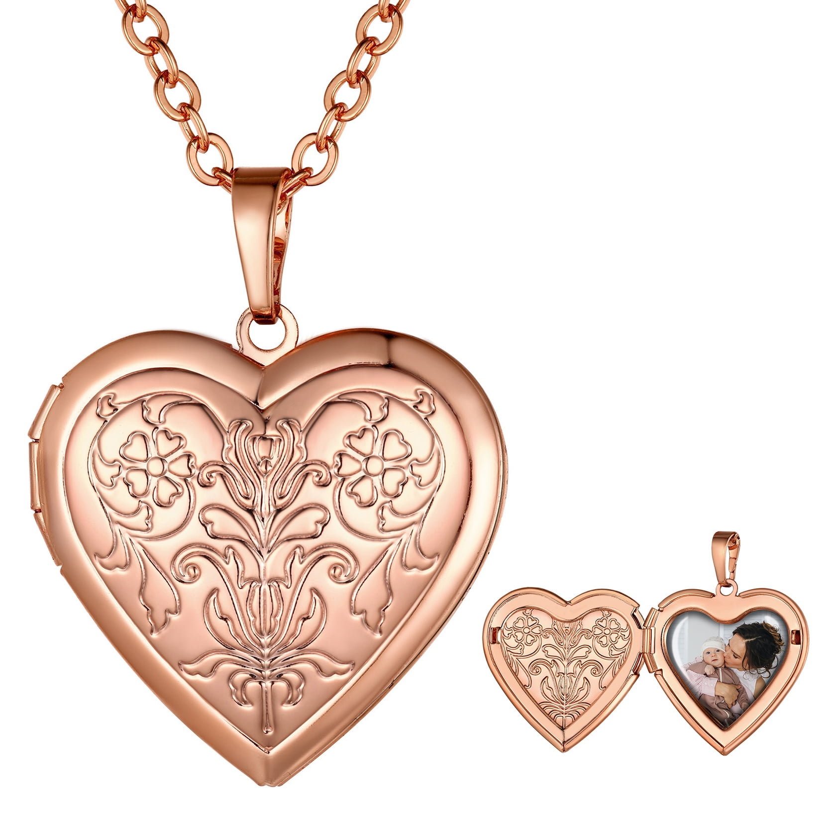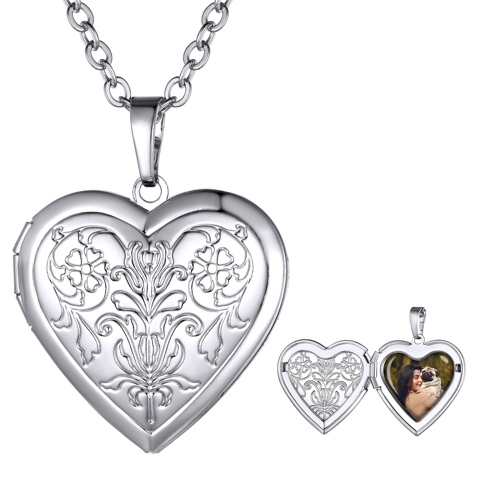 CLASSIC PHOTO LOCKET NECKLACE - Romantic heart shape, flower engraved. He/She is an important person in your life. When you miss him/her, you can touch the locket anytime and anywhere, just like hugging him/her; you can open the locket to see the photo inside, just like seeing him/her; you can read the words of the back of the locket, just like talking to him/her. Hope this necklace makes you fully express your miss and treasure of the important people.