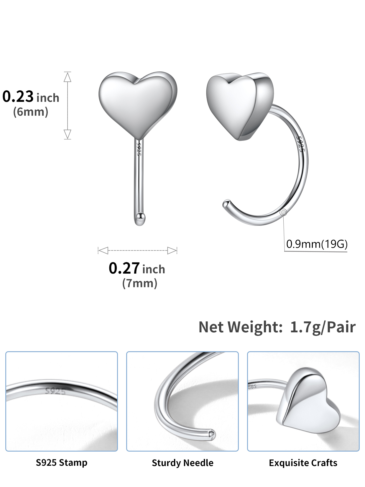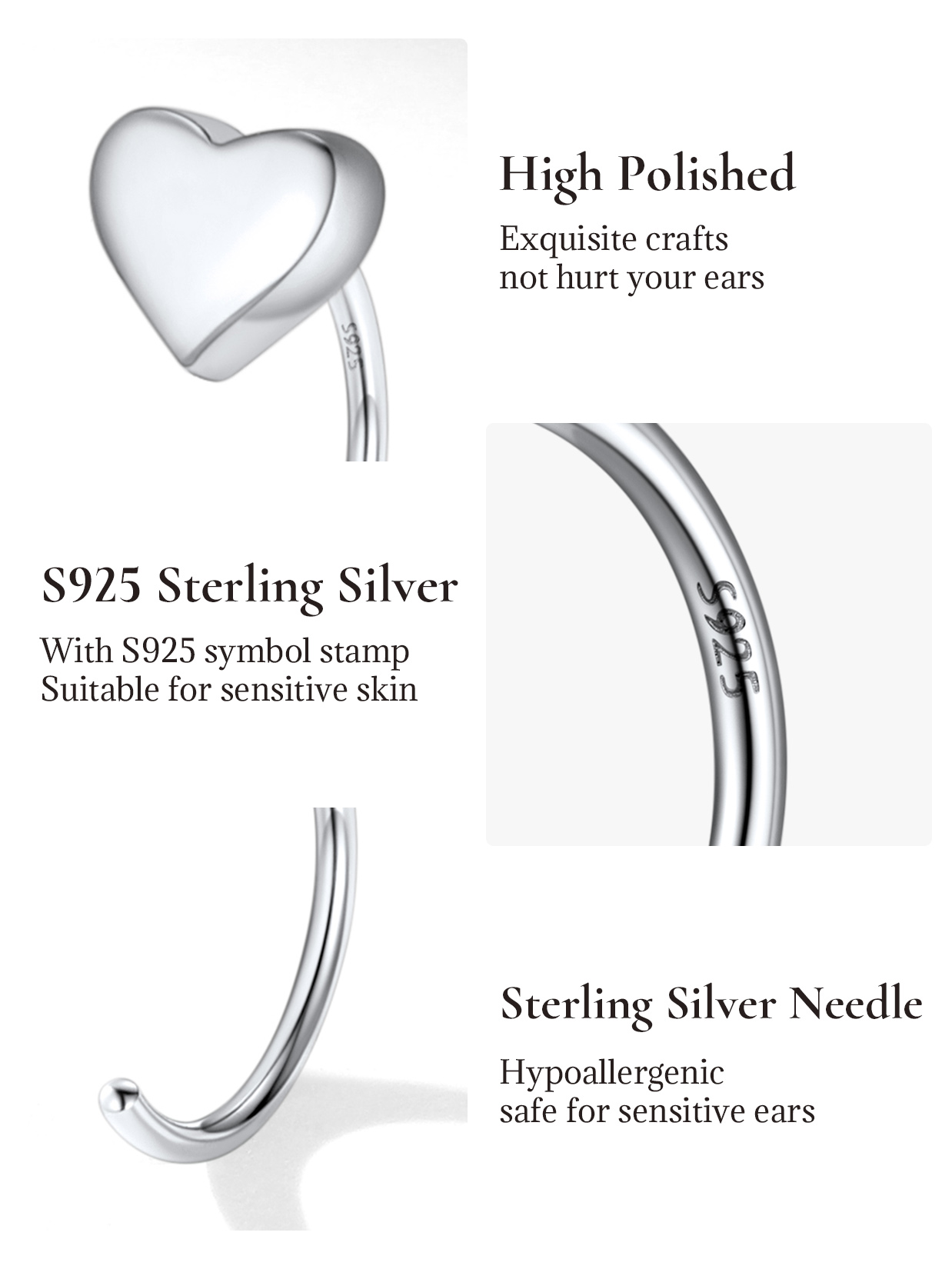 Hypoallergenic Sterling Silver Earring: high quality 925 sterling silver made, hypoallergenic earrings, Nickel-Free and Lead-Free, S925 needle, safe for sensitive ears. Lightweight hoops huggie earrings, smooth edges comfort your ears skin.