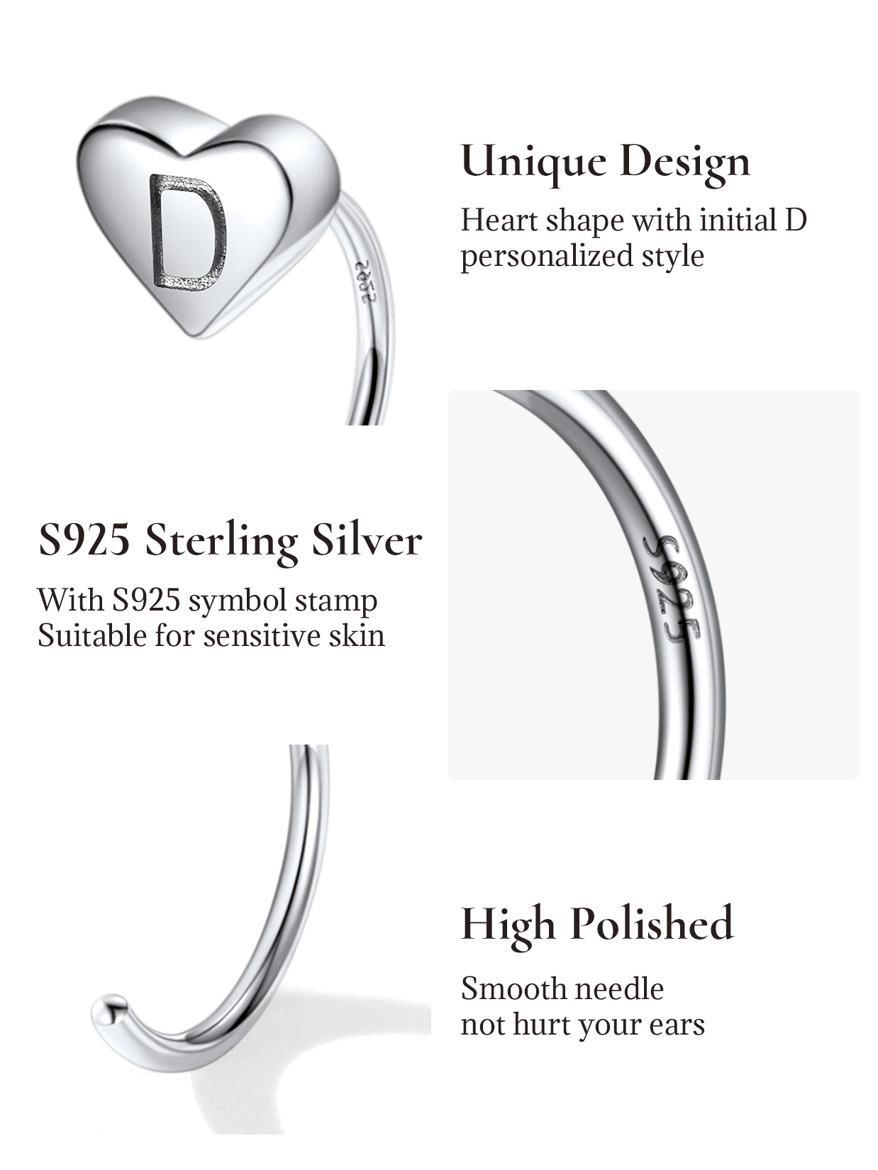 ♦ Hypoallergenic sterling silver initials earring