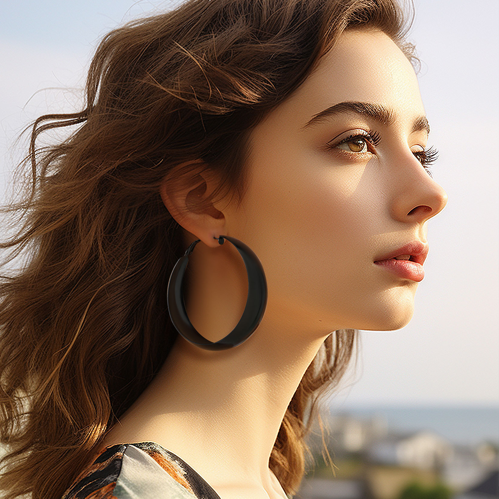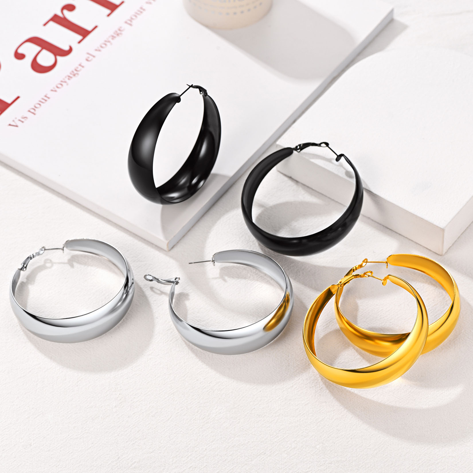 ??Lightweight Chunky Hoop Earrings??A classic stainless steel hoop earring is a staple for every jewelry wardrobe. Get a pair (or two, or three) and step out with confidence. These chunky stainless steel hoop earrings are available in 40mm, 60mm to meet women and girl's needs, so teens girl can choose the size that suits you.