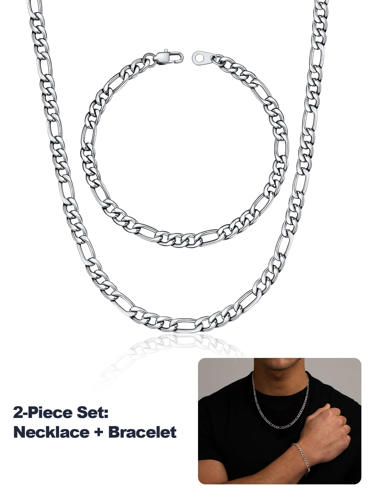 Perfect Gift for Father and Son: The necklace bracelet set comes with U7 brand gift box and a black velvet bag. Fabulous present for friend, father, brother, son, boyfriend and dad. Timeless fashion that can be worn on daily wear, ball, rock concert, party, Birthday, Christmas, Anniversary, Wedding, Father’s Day, Valentine’s Day.