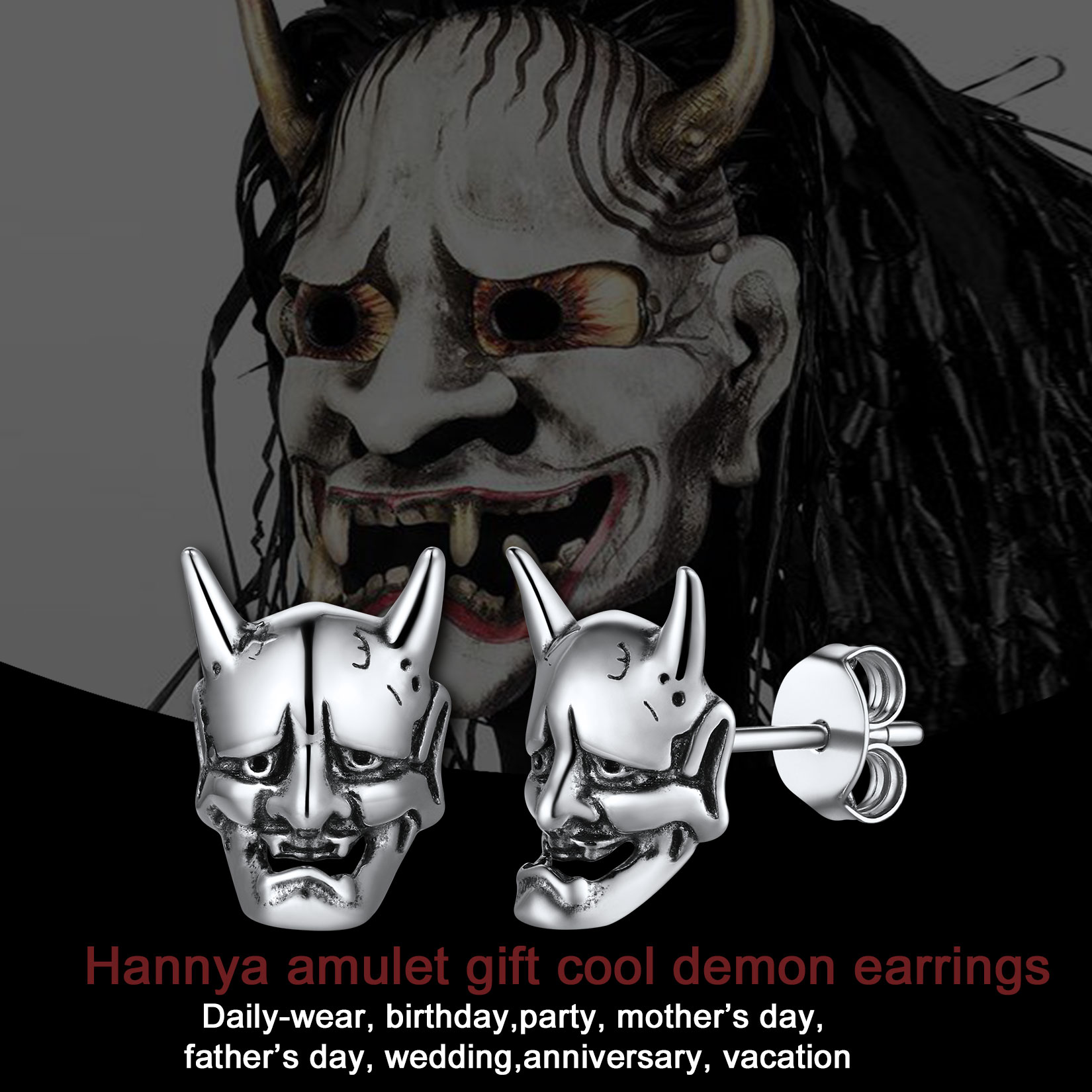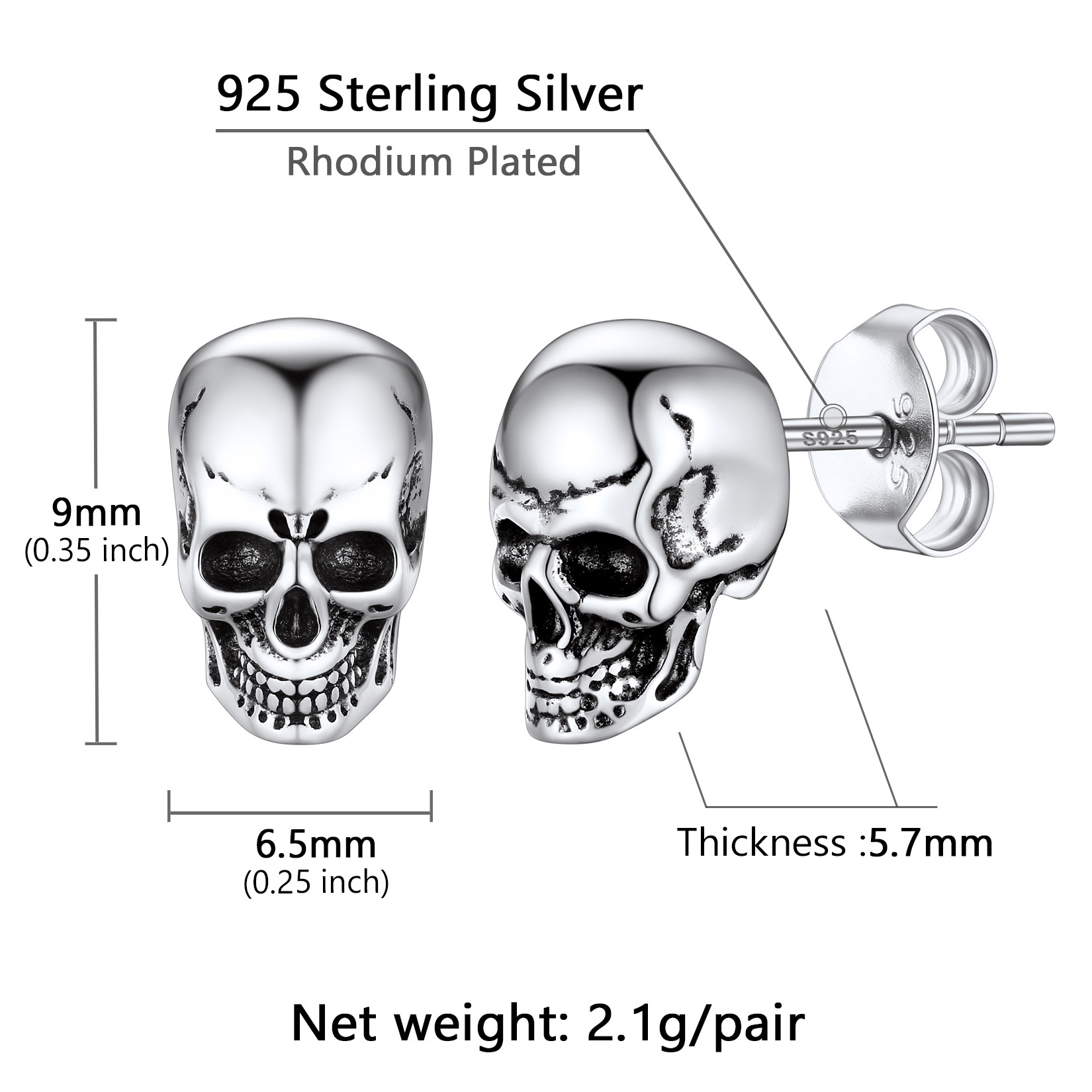 U7 Mens Punk Skul/Hedgehog/Hannya Mask Stud Earrings Sterling Silver Skeleton Cool Ear Jewelry