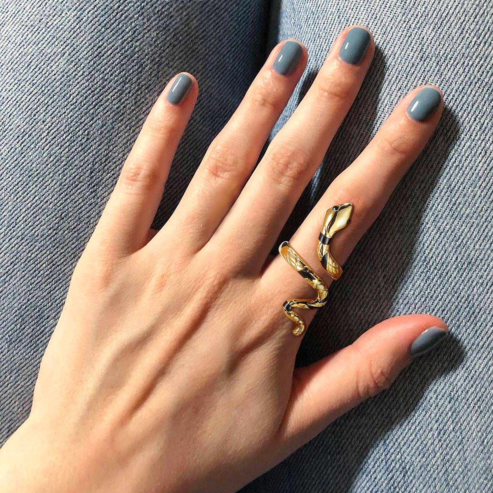 1.UNIQUE DESIGN:Snake Long Full Finger Ring, With black texture design, Decorated with black AAA+ cubic zirconia, Sinuous body, Trim your beautiful hands, Catch everyone's eyes, Delicate animal finger ring jewellery.
