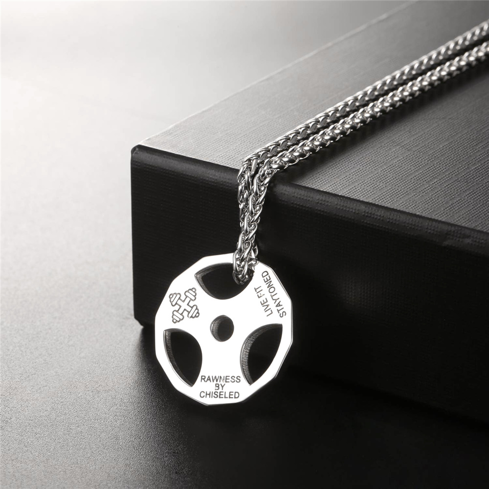 ??Fitness Dumbbell Stainless Steel Mens Pendant Necklace??Fashion simple design of Fitness Dumbbell, provide you a cool look. It can match your any apparel and be wore in any occasion. Stainless steel material, hypoallergenic and comfort fit. Perfect men pendant necklace it is!