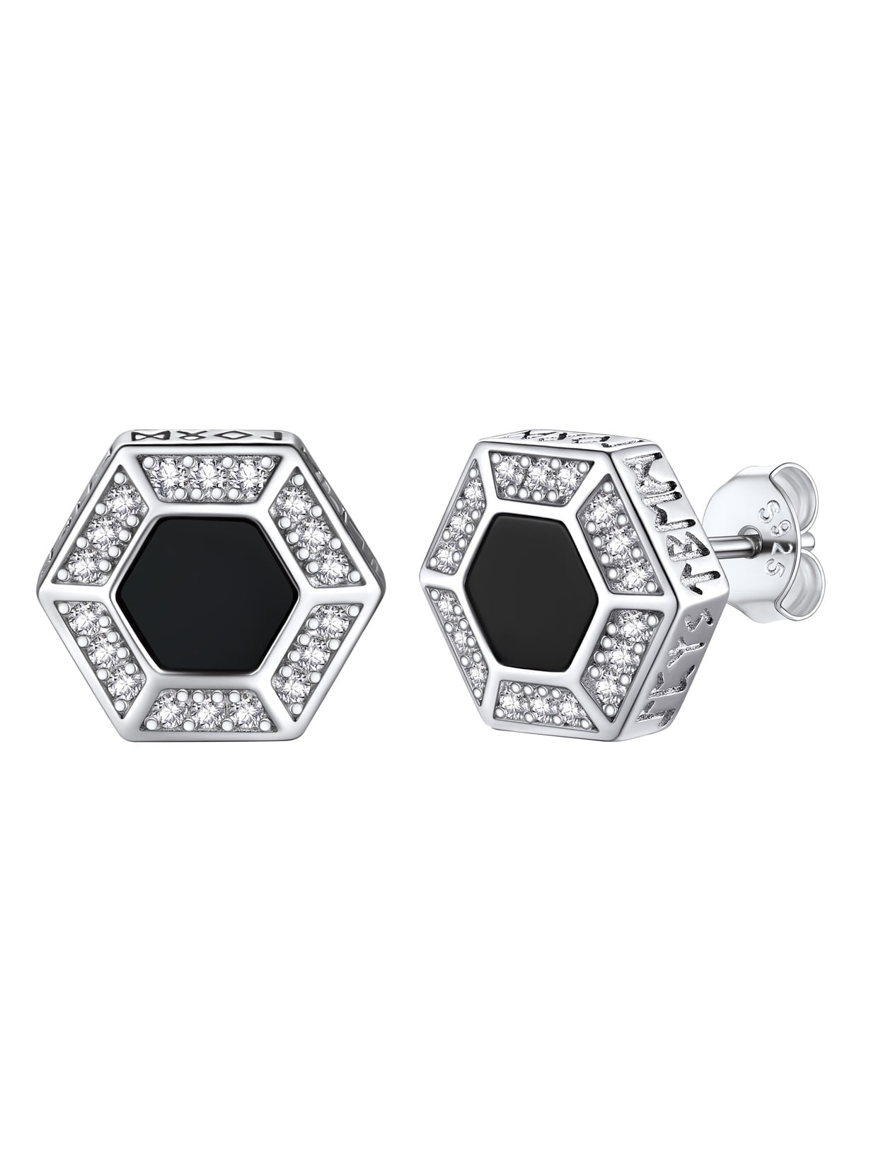 U7 Black Onyx Earrings for Men:Natural black onyx in the middle of viking earrings , surrounded by AAA+ Cubic Zirconia and Norse Viking Rune, unisex style, fashion and cool.