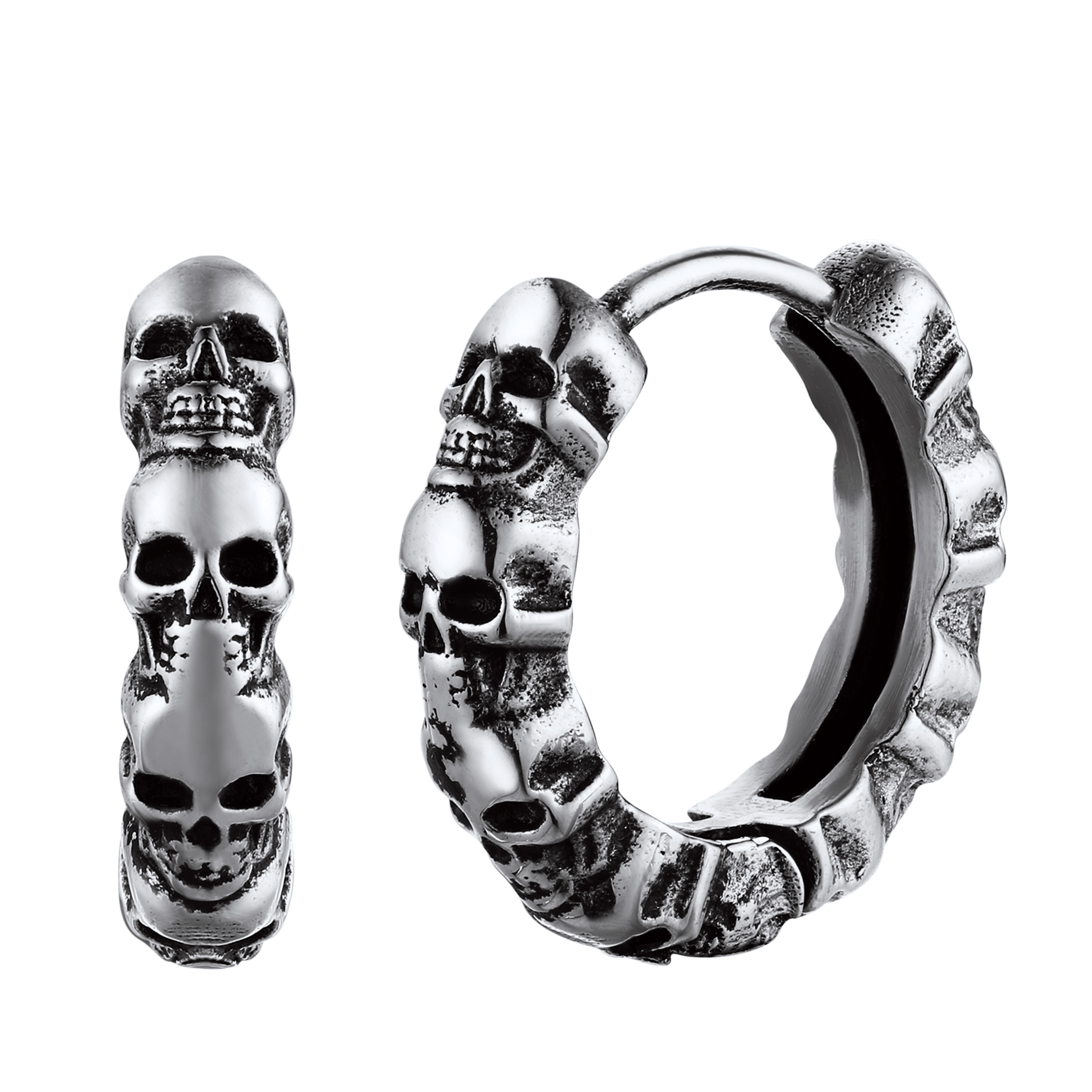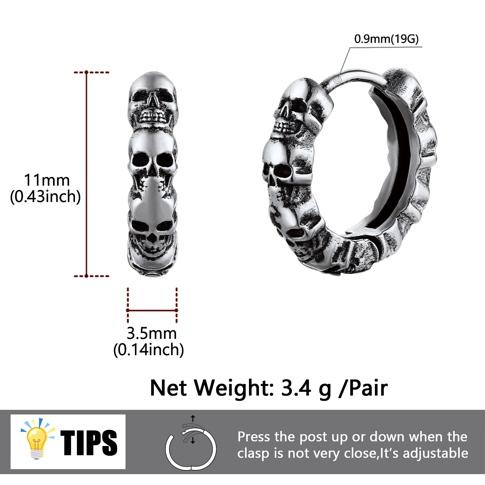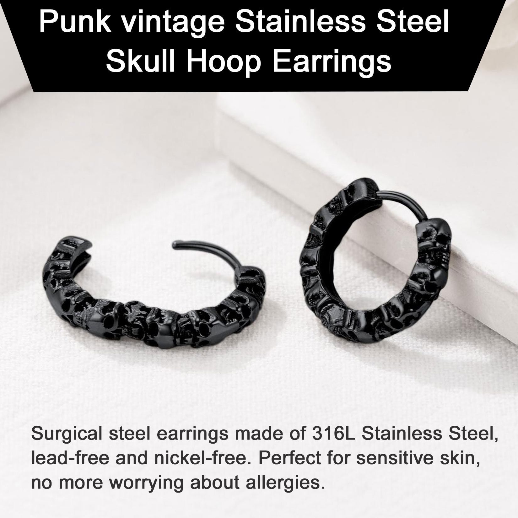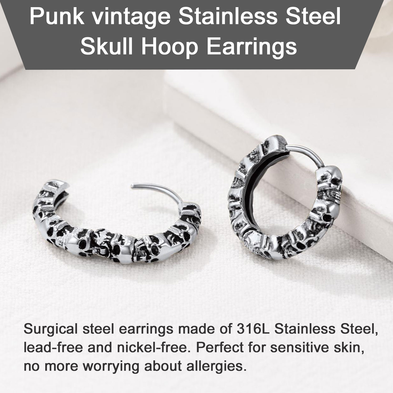 U7 Vintage Skeleton Skull Hoop Earrings Silver Round Earring Huggie Stainless Steel for Men Boy Rapper